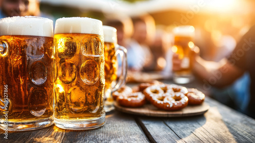 oktoberfest, bavarian, friends, celebration, beer, mug, toast, festival, german, alcohol, sausage, joyful, drink, event, lively, cheer, food, culture, cheerfulness, clinking, bar, fun, gathering, camaraderie, social, pub, bavaria, german, market, traditional, october, table, wood, people, festive, costume, smile, enjoyment, tent, pretzel, harvest, autumn, happiness, community, dining, cookery, rustic, space