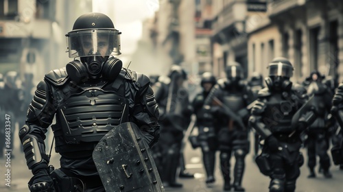 A group of riot police in the city to respond to riots.