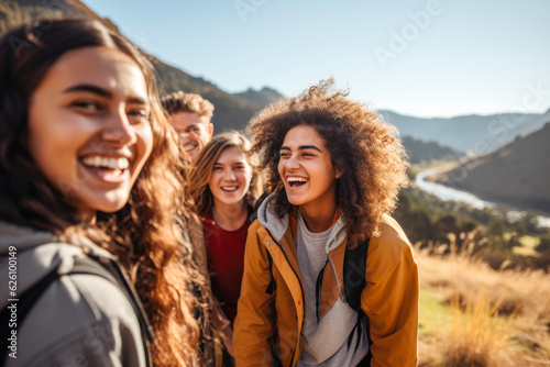 A group of teenagers hiking and enjoying nature, a group of young friends exploring the great outdoors, embracing an active lifestyle in nature