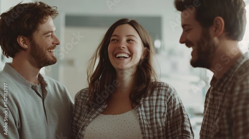 friends, group, laughter, happiness, joy, people, smiling, cheerful, positive, together, happy, friendship, connection, social, togetherness, casual attire, relaxed, indoor, room, home, living, fun, young, adult, laughing, friends, human relationships, communication, female, male, woman, man, 2, three, standing, look, looking, talking