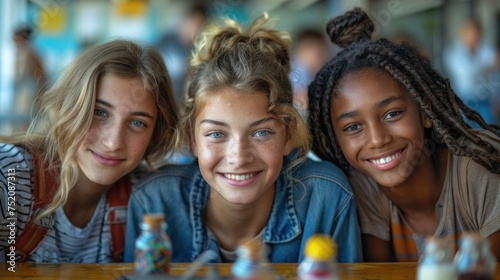 group, missy, friends, standing, together, multicultural, bonding, solidarity, support, woman, female, girl, team, friendship, companionship, togetherness, different, sister, smiling, happy, cheerful, generation, social, connection, community, interaction, communication, relationship, people, united, empowerment, confidence, student, college, university, campus