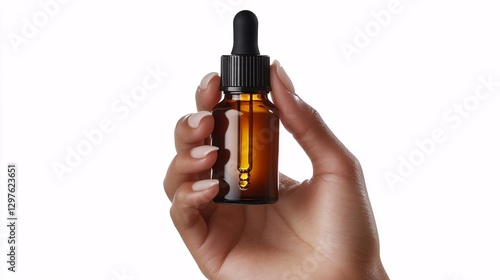 hand, bottle, dropper, glasses, liquid, serum, skincare, cosmetic, beauty, brown, clear, product, treatment, wellness, health, oil, amber, natural, care, medicine, pipette, ampoule, isolated, background, white, skin, nail, finger, holding, closeup, detail, container, small, dark, person, drop, transparent, inside, droplet, empty, fill, filled, texture, application