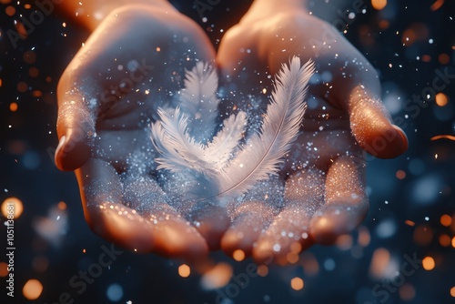 hand, holding, feather, glistering, white, sparkling, dreamy, aethereal, love, quality, shape, valentine, romantic, concept, nubes, day, background, red, symbol, woman, beautiful, female, people, romance, holiday, snow, winter, healthy, christmas, human, life, care, happiness, charity, cold, happy, nature, feeling, closeup, signs, finger, celebration, blue, season, glowing, february, bokeh