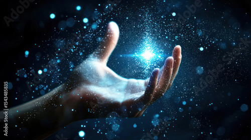 sparkle, radiant, energy, blue, starburst, dark, night, light, emerald, starlight, star, shadowy, green, sparkle, glow, glowing, hand, shadow, darkness, holding, background