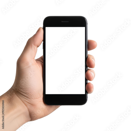 hand, smartphone, device, screen, blank, white, display, phone, grip, hold, mobile, digital, empty, closeup, finger, touch screen, technology, modern, contraption, interface, minimalist, clean, sharpened, light, illuminated, user, app, icon, background, simple, portrait, touch