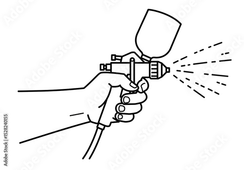 hand, spray, gun, spraying, container, black, white, line, drawing, tool, equipment, paint, airbrush, automotive, repair, maintenance, artist, design, illustration, outline, vector, graphic, clip art, art, icon, symbol, signs, isolated, background, professional, industrial, workshop, mechanic, bodywork, finishing, coating, application, trigger, nozzle, hose, grip, finger, arm, wrist, human, body, part, manual, labor