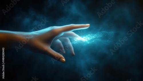 A hand reaching out to touch glowing energy