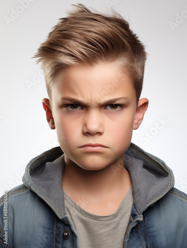 A handsome boy is angry and offended. Age crisis. Isolated on white background