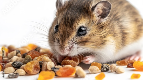 A handsome hamster isolated on a white background. Exotic pet. Mouse rodent pest. Eats dried fruits and seeds.