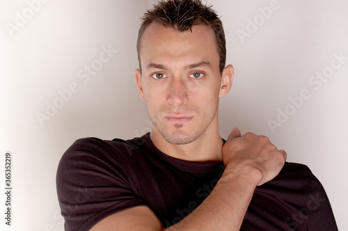 person, portrait, face, eye, green eye, people, studio, shot, photograph, man, model, happy, white, style, smile, smiling, body, muscular, young, photogenic, muscle, torso, fitness, athlete, dark hair, chest, guy, fit, athletic, healthy, muscle, fashion, summer, attractive, caucasian, young men, man, masculine, naked, sexy, adult, hair, macho, underclothing, pose, lifestyle, black, shirt, arm, seductive