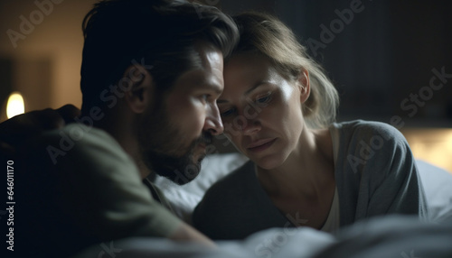 man, woman, adult, love, lifestyle, indoor, 2, people, togetherness, boyfriend, dating, adults only, flirting, real people, selective focus, sitting, girlfriend, comfortable, part of, bed, enjoyment, cheerful, sorrowful, romance, couple, human relationships, affectionate, bonding, missy, relaxation, domestic life, husband, casual clothes, married, home interior, wife, young couple, happiness, embracing, smiling, bedchamber, looking, night