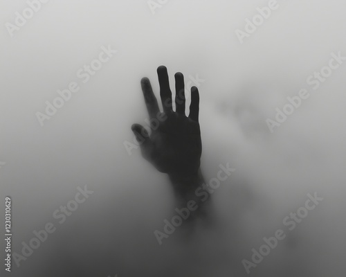 A haunting silhouette of a hand emerges from a thick fog, creating an atmosphere of mystery and emotional depth. This image symbolizes struggle and isolation
