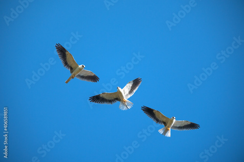A hawk flying in the sky (Black-shouldered Kite)