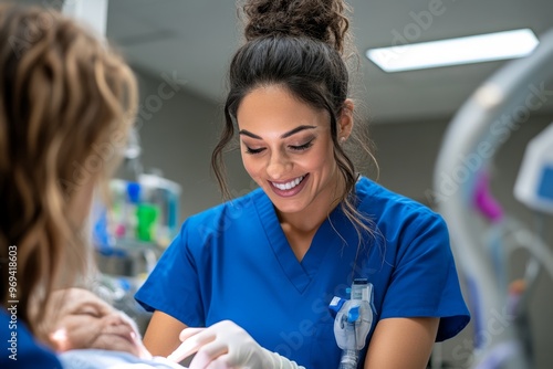 A healthcare worker preparing a patient for surgery, offering calming words and reassurance as they ease the patient’s anxiety