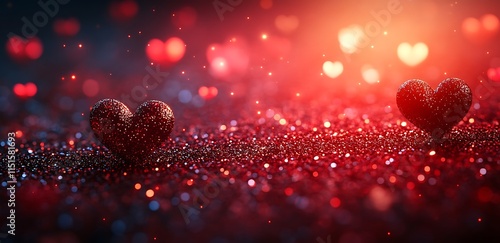 A heart-shaped object resting on a red surface under a beautiful sunset Happy Valentine's Day