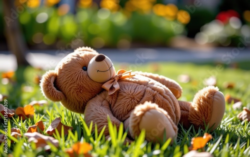 stuffed animal, childhood, nostalgia, happiness, joy, play, friendship, comfort, soft toy, plush toy, nature, outdoors, grass, sunshine, spring, summer, cute, adorable, cuddly