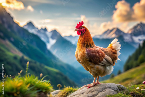 hen, chicken, bird, farm, animal, fowl, mountain, mountain, range, hill, vale, field, grass, green, meadow, sky, cloud, blue, sunrise, sunset, nature, scenic, landscape, alpine, rural, countryside, summer, spring, flora, fauna, wild, wildlife, picturesque, beautiful, colourful, vibrant, tranquil, serene, peaceful, majestic, gorgeous