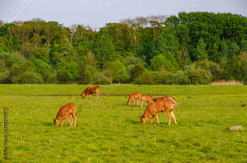 cow, graze, milk, herd, farm animal, beef, agriculture, summer, mammal, farm, animal, rural, husbandry, cattle, background, nature, landscape, eat, meadow, farming, environment, field, brown, view, standing, pasture, economy, grass, grazing, farmland, heifer, meat, denmark