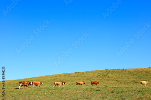 herd, mammal, grazing, animal, cattle, grass, field, nature, landscape, green, rural, meadow, farmland, farm, pasture, farm animal, agriculture, pastoral, blue, sky, bull, spring, white, farming, countryside, ranch, black, cow, calf, bovine, outdoors, eating, blue skies, cute, group, sunlight, environment, sunny, cow, graze, many, wild, industry, eat