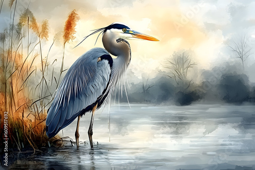 A heron wading through wetlands