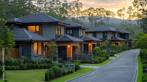 development, architecture, new, suburb, modern, house, street, rooftop, design, outdoors, luxury, city, built structure, detached house, horizontal, facades, home, grass, day, summer, tree, driveway, no people, photo, window, color image, building exterior, pattern, sky, residential area, homeownership, sidewalk, city landscape, growth, housing, landscaped, lawn, residential, suburban, us, beauty, construction industry, small, american culture, estate, luxury home