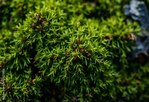 A highly detailed macro style photograph of a mountain moss show