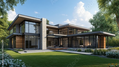 A high-quality blueprint of a modern house, with accompanying 3D visuals and technical plans, showcasing a comprehensive architectural design