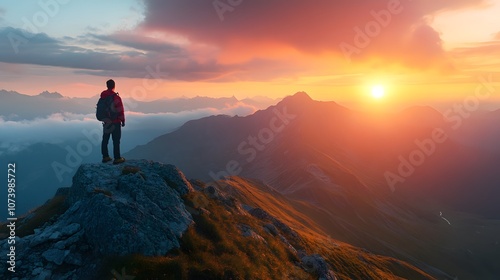 person, peak, hiking, nature, sky, sunset, landscape, mountain, freedom, silhouette, standing, success, summit, hiker, adventure, top, travel, sunrise, climbing, rock, sun, achievement, dusk, horizon, panoramic, watching, businessman, cliff, hill, sport, sunlight, breathtaking, climber, man, cloud, outdoors, view, accomplishment, alone, calmness, dawn, exploration, extreme, free, glowing, goal, hope, journey, leadership