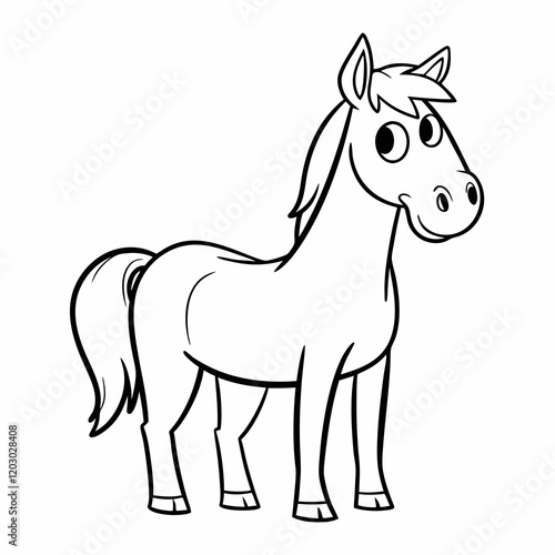 horse, standing, field, white, face, black, nose, looking, animal, camera, illustration, cartoon, vector, cute, pony, art, tail, character, farm, outline, mammal, draw, mane, hoof, vignetting, colouring, happy, nature, fast horse, line, funny, page, book, cheerful, mare, smile, clip, toy, farm animal, graphic, steed, unicorn, beautiful, wild, baby, wildlife, magic, silhouette