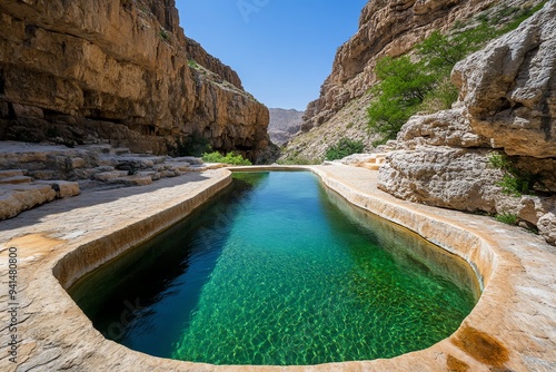 A hot spring located in a remote canyon, with towering walls and a narrow, secluded pool