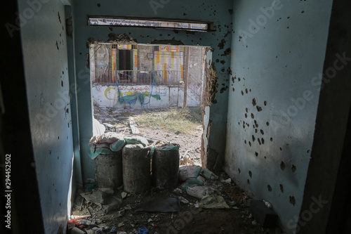 A house destroyed by war in the city of Taiz, Yemen