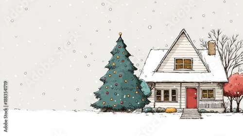 snowing, christmas tree, christmas, house, illustration, cartoon, december, decoration, door, home, festive, architecture, vector, design, holiday, winter, card, celebration, decorative, new, fir, building, greeting, holly, client, fun, time, buying, background, design element, aethereal, three-dimensional