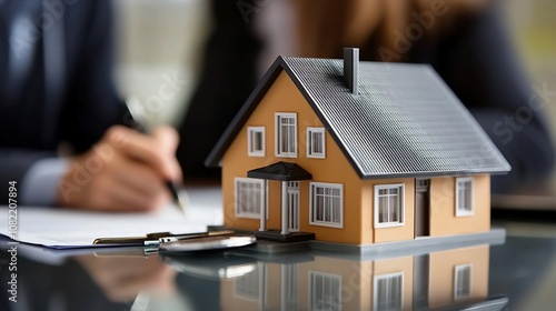 house, model, home, real estate, property, sale, purchase, contract, agreements, document, signature, key, magnifying glass, desk, office, business, finance, investment, lawyer, realtor, agent, buyer, seller, mortgage, loan, financial, success, growth, future, dream, family, security, stability, lifestyle, new, modern, contemporary, traditional, classic, residential, suburban, urban, city landscape, background, closeup, selective focus, indoor, horizontal