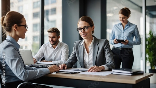 A human resources office processing payroll, managing employee benefits, and overseeing recruitment efforts to attract top talent to the organization