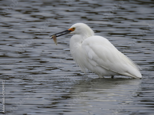 A hungry snowy egret with a tadpole in its beak. Edwin B. Forsythe National Wildlife Refuge, Galloway, New Jersey.