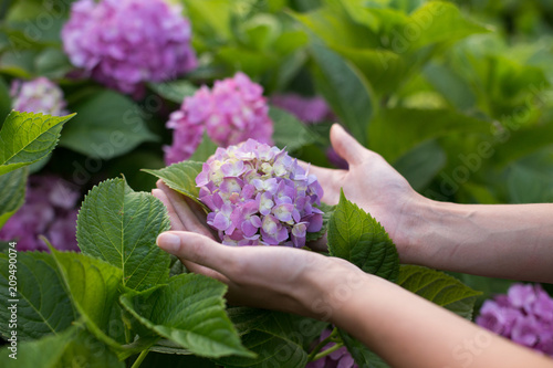 a hydrangea and a girl's hands