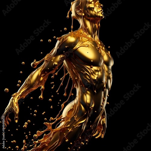 a hyper-realistic image of a human figure sculpted out of molten gold