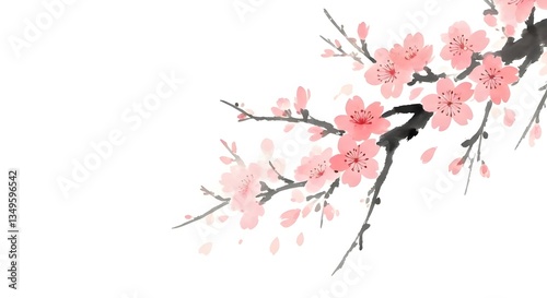 A Japanese ink wash floral background with delicate cherry blossoms, Ai Generated