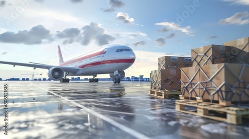 A jet is parked in an air freight cargo facility.