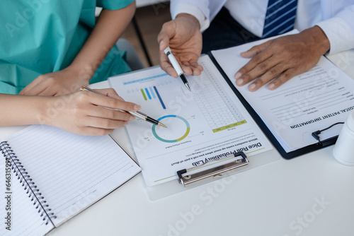 A joint meeting between doctors, a meeting summarizing the prescription of medicines and importing medicines for use in hospitals, a meeting to discuss together. Doctor meeting concept.