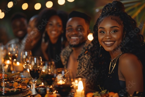 couple, party, celebration, friends, candlelight, festive, joyful, smile, dining table, happy, togetherness, glow, sparkling, relaxed, cheerful, communion, camaraderie, intimate, personal, engagement, night, vibrant, laughter, blurred background, joy, fellowship, harmonious, festive attire, smiling, candle, emotional, connected, heartwarming, dynamic