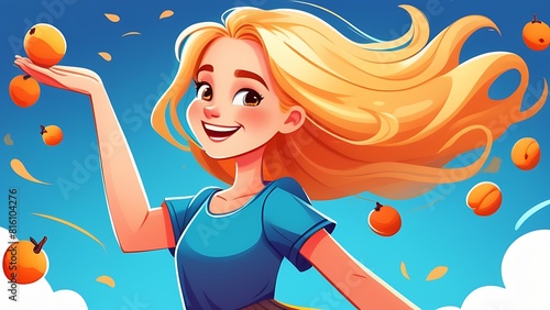 girl, teenage, golden hair, joy, apricot, be of use, beauty, background, illustration, health, fruit, plant, diet, fall, decayed, natural, organic, dessert, epicure, eat, component, air, berry, agricultural, sweet, movement, motion, ripe, flying, preparation, closeup, tasty, fresh, juicy, cover, wrapper, screensaver