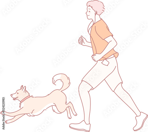 A joyful person jogging along with a playful dog, exemplifying an active, energetic, and healthy lifestyle together