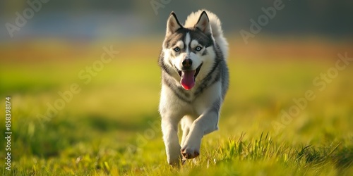 husky, running, grass, siberian, field, energetic, joy, freedom, vitality, sky, dog, playful, happiness, excitement, speed, nature, canino, pet, athletic, fur, tongue, happy, sunlight, background, movement, action, dynamic, adventure, robust, health, daytime, scenic, wild, power, bright, life, fun, animal, front