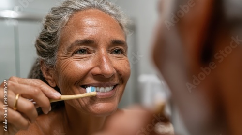 teeth, hygiene, smiling, woman, care, confidence, joy, routine, personal, bathroom, mirror, health, healthy, beauty, morning, grooming, lifestyle, skin, happiness, toothbrush, freshness, clean, well-being, relaxing, simplicity, modern, ritual, positivity, vibrant, accessory, style, elegance, smile, wellness, age, aesthetic, balance, empowerment