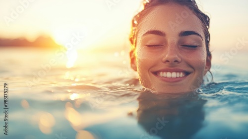 woman, swim, ocean, sunset, water, happiness, smile, relaxing, beach, female, nature, wave, sun, illumination, tranquil, enjoyment, summer, leisure, blue, adventure, warm, calm, beauty, freedom, playful, splash, horizon, skincare, wellness, sunlight, maritime, serenity, bliss, active, lifestyle, vacation, exploration, joy, clear, aquatic, radiance, fitness, health