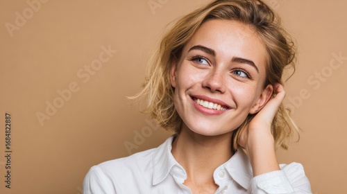 woman, blond, hair, smile, happy, portrait, beauty, confident, light, beige, background, thoughtful, eye, face, smiling, attractive, casual attire, positive, natural, caucasian, friendly, style, fashion, well-being, charming, image, photo, beautiful, colourful, bright, creative, modern, elegant, stylish, professional, decorative, vibrant, stunning, amazing, marvellously, fantastic, gorgeous, lovely