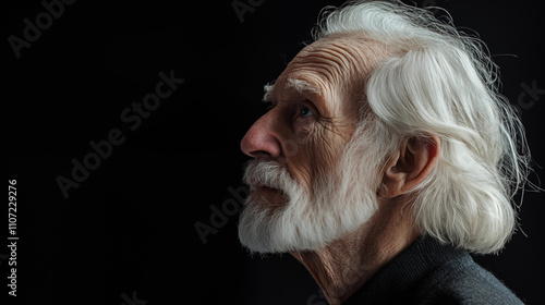 A kind white-haired old man on a black background