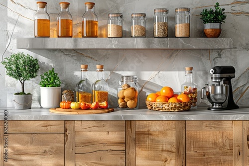 a kitchen counter full of food cooking tools and appliances professional advertising food photography