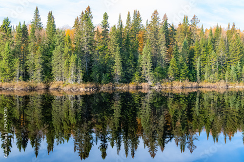 A lake in the forest in Canada, during the Indian summer, beautiful colors of the trees